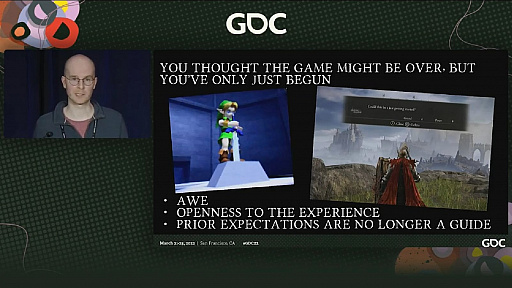 2020年に入ると新型コロナウイルス感染症が猛威を振るったが,自宅以外に仕事場を持っていたので,閉塞感に悩まされることはなかった。開発のこの段階では,「ゲームは終わったのに,始まったばかりだ」という感情を想起させることを目標にしていたという。これは,氏が「ゼルダの伝説 時のオカリナ」を遊んで感じたことに由来する。最近は「ELDEN RING」でも似た感覚を味わったとのことだ。