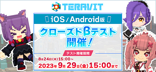 サイバーステップ株式会社は、完全新作サンドボックスゲーム『テラビット』において、2023年8月24日(木)15時より「iOS/Android版のクローズドβテスト」を開始することをお知らせします。また、募集人数を超えた応募がありましたため、当選枠を拡張したことをあわせてお知らせします。