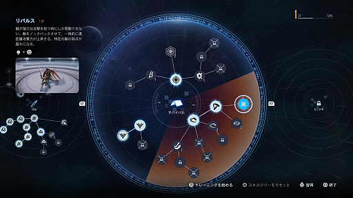 ![]() スキルツリー。戦闘に限らないアクションもあるが,一部は条件を満たさないと身に付けられないものもある |