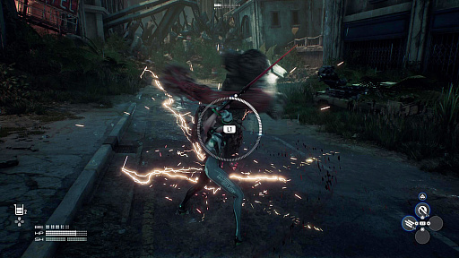 ゲームを中盤まで進めていくと,合流したエンジニア「リリー」によってイヴに遠距離攻撃の手段が追加される。こちらは同行するドローンを装備し,射撃モードに入り銃撃を行うもの。遠距離から敵にダメージを与えられるが,発射には専用の弾丸が必要となる。