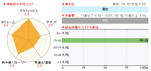 グラフィックス サウンド 快適さ/運営 熱中度/ストーリー ボリューム 5 3 2 4 4