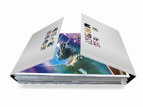 全30種類以上のポストカード入り(一部ホログラム加工)「大狩猟展限定スペシャルポストカードBOX 黒龍ver.」が特典に付いた特別チケットを販売。ミラボレアスの重厚な鱗を模した特装BOXで、限定5,000個抽選にて販売となります。