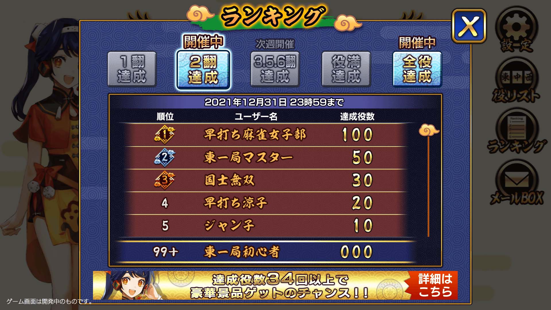 「目指せ全役達成! 一局麻雀」でプレゼントキャンペーン開催