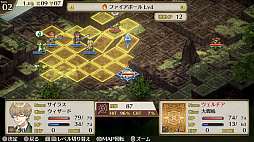 戦闘は高低差のあるクォータビューのマップで行われ、正面・背後・横方向で変わる戦闘結果、味方キャラの立ち位置による援護効果など戦略性の高さが特徴です。