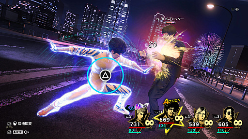 「新ライブコマンドRPGバトル」は、誰もが簡単に楽しめるターン制バトルでありながら、常に変化する街や人の状況を活用する戦略性や躍動感あふれるアクション性の高さを兼ね備えた『龍が如く』ならではのバトルシステムです。自由度、爽快感が増したエキサイティングなバトルが展開されます。