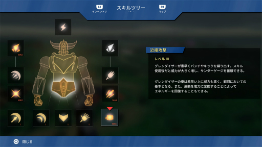 「スペースサンダー」 を発動可能だ。射線上の敵に大ダメージを与える必殺技で,発動時にはグレンダイザーの周囲に岩くれが浮かぶ演出がカッコ良い。