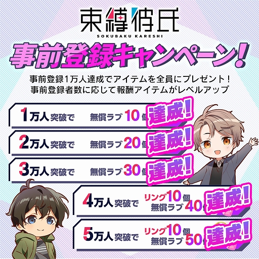 2021年11月より開催の「事前登録キャンペーン」の登録者数が5万人を突破いたしました。皆様への感謝を込めて、ゲームプレイに役立つ「リング10個」「無償ラブ50個」をプレゼント※いたします。