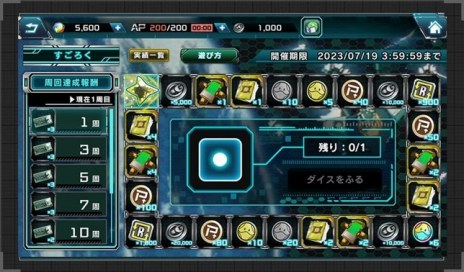 ダイスを使用し、特定のマス目に到達することで「ハロコイン」や「兵装強化Pt」などの報酬を獲得できる期間限定イベントです。また、周回数に応じて「MSガシャチケット」「キャラガシャチケット」がそれぞれ最大で10枚獲得可能となります。期間中に特別デイリー実績をクリアすることで、ダイスを獲得できます。