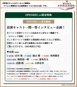 ・OPENREC.tv限定特典:OPENREC.tv限定動画(出演キャスト一問一答インタビュー企画)