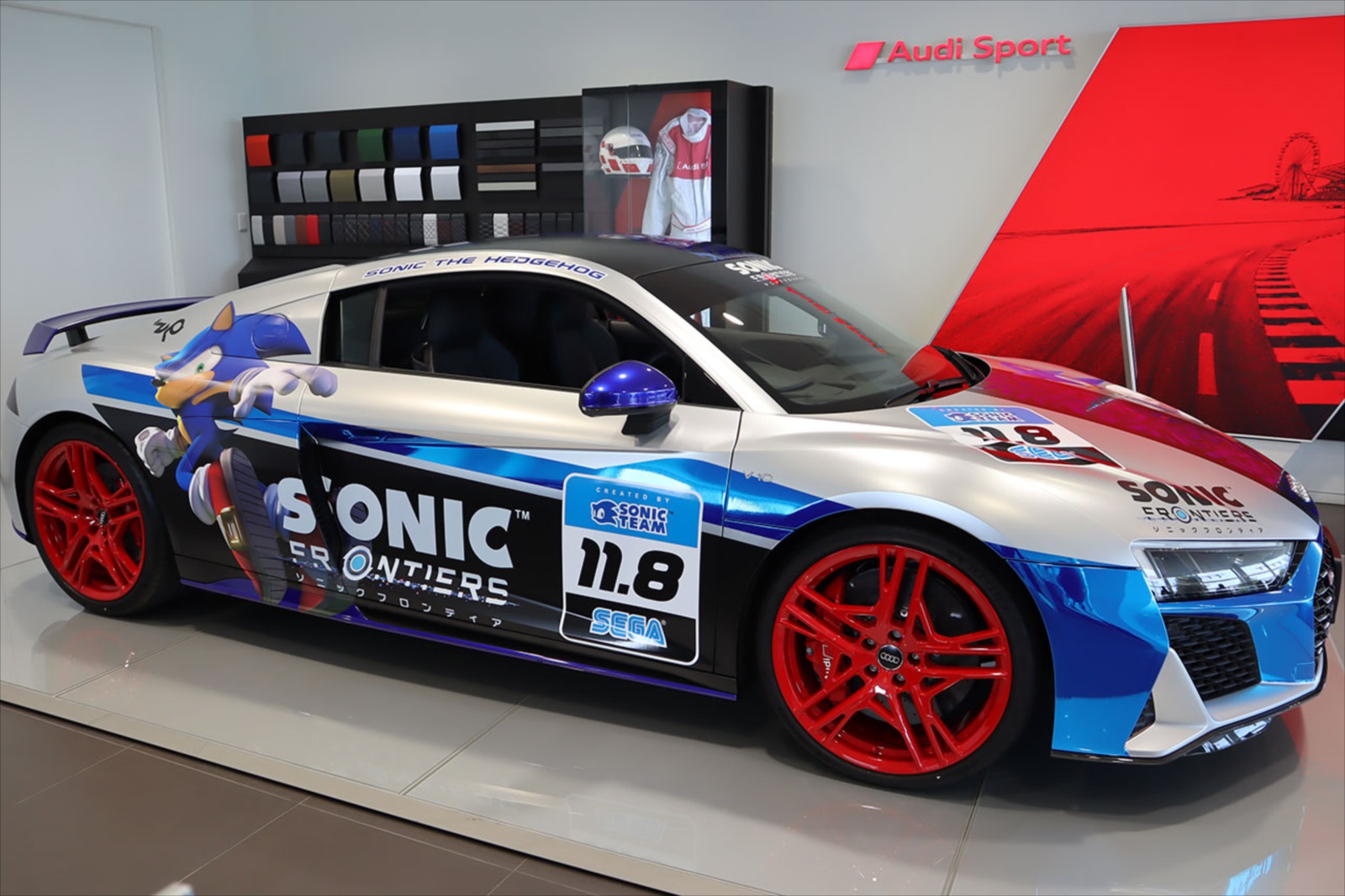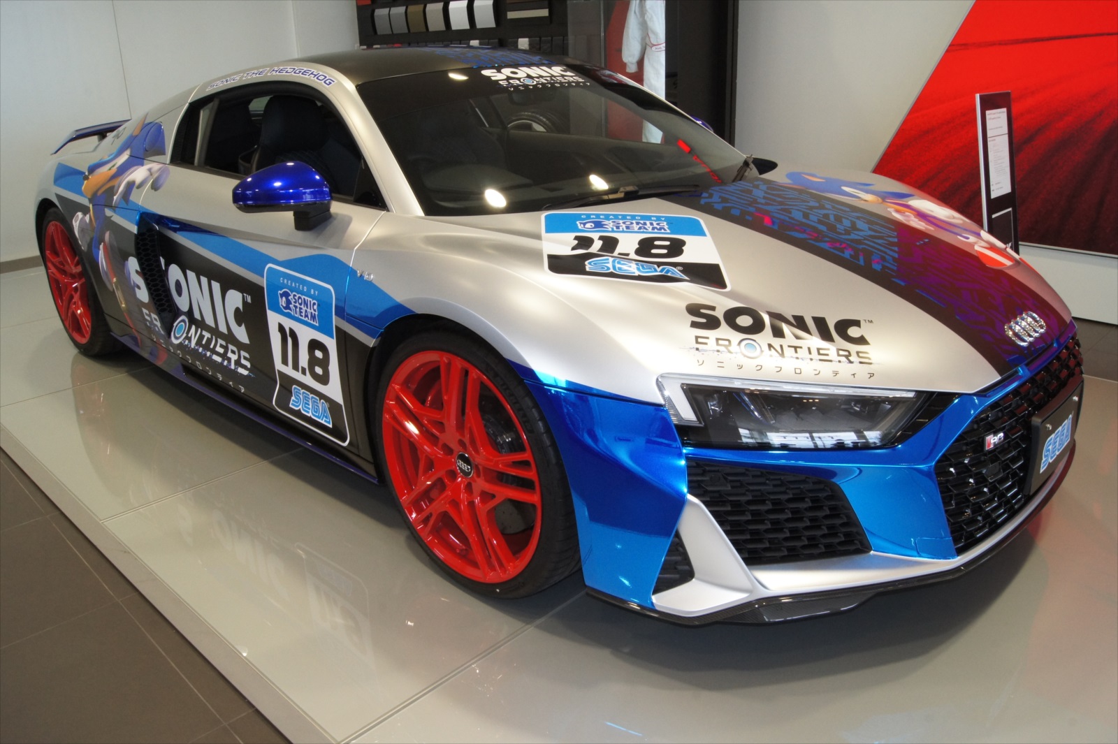 「ソニックフロンティア」の“Audi R8”コラボラッピングカーがお披露目に。“世界に1台しかないソニックカー”は約3000万円,限定販売を予定