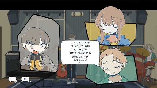 そこで立ち上がったのが,1か月後に開催されるライブの出演計画だ。話し合いの結果,練習を重ねて成功を収められたらバンド活動を継続。ラーマが過去に縛られたままなら解散,という状況になる。