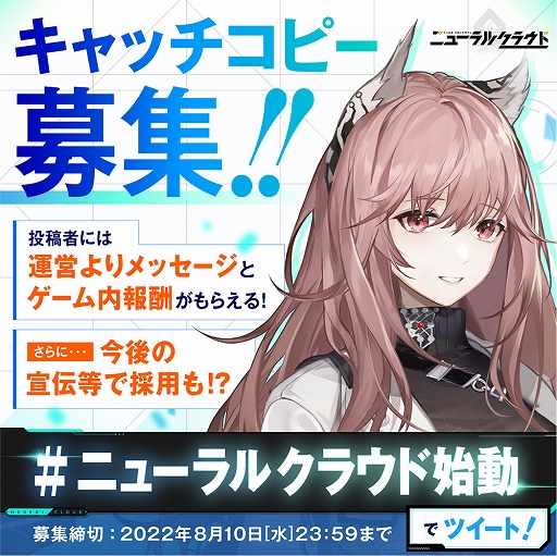『ドールズフロントライン:ニューラルクラウド』ではゲームにぴったりなキャッチコピーを募集中です。