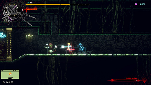 いわゆるメトロイドヴァニア(2D探索型アクション)の本作だが,特徴の1つとして,迷宮をスピーディーに駆け巡ることができるパルクールアクションがある。