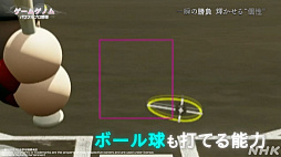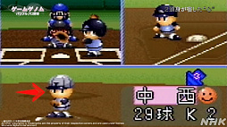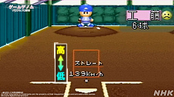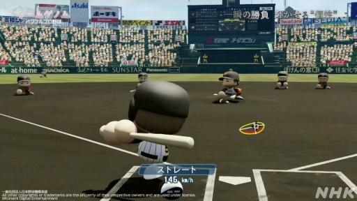 1つめのキーワードが「2頭身が宿した“心”」だ。左右だけではなく高低差も表現された投球システムに,バット(ミートカーソル)の当たりどころやタイミングによって変化する打球表現。そしてタイトル名にもなっている※,実際の野球中継を担当するプロのアナウンサーによる実況と,野球のリアルを追求して作られたパワプロだが,しかし選手はリアルとはかけ離れた2頭身のキャラクターである。