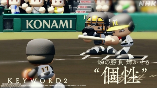 2つめのキーワードは,「一瞬の勝負 輝かせる“個性”」。野茂英雄選手のトルネード投法やイチロー選手の振り子打法,松田宣浩選手の熱男,前田健太選手のマエケン体操など,パワプロシリーズでは選手固有のフォームやパフォーマンス,動きなどで個性を表現している。