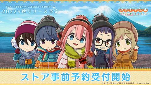 株式会社enish(本社:東京都港区、代表取締役社長:安徳 孝平、以下 enish)は、映画『ゆるキャン△』の公開日でもある2022年7月1日(金)に、TVアニメ『ゆるキャン△』初となるスマートフォン専用ゲーム「ゆるキャン△ つなげるみんなのオールインワン!!」の「App Store」および「Google Play ストア」での、ストア事前予約受付を開始しました。また、これにあわせてゲームサイクルに関する情報公開を行いました。本タイトルは、2022年秋のリリースを予定しています。