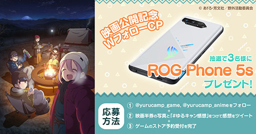 また,各アプリストアでの事前登録開始と,映画「ゆるキャン△」の公開を記念したキャンペーンが,ゲーム版とアニメ版の各公式Twitterでスタートした。詳しくは以下に掲載したリリース文を確認してほしい。