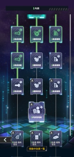前者の内政マップは文字どおりプレイヤーの内政力を高めるもので,与えられた拠点の施設を発展させることで,より強力な艦隊を作り出せるようになる。「食料」「燃料」「鉱物」という三つの資源をそれぞれ一定時間ごとに生み出す製造プラント,それを保管する物資貯蔵庫,艦隊を構成する宇宙艦を製造する兵器廠,さらに同盟側では士気の回復を高める効果があるハイネセン像などさまざまな施設が用意されており,まさに心臓部と呼べるものになっている。