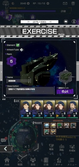 ただし演習にせよ賊軍との戦いにせよ,消耗した味方の艦船は普通に手元から減っていくので,戦う相手は選びたい。ただ負けるだけならまだしも,全滅するとかなり懐が痛い。