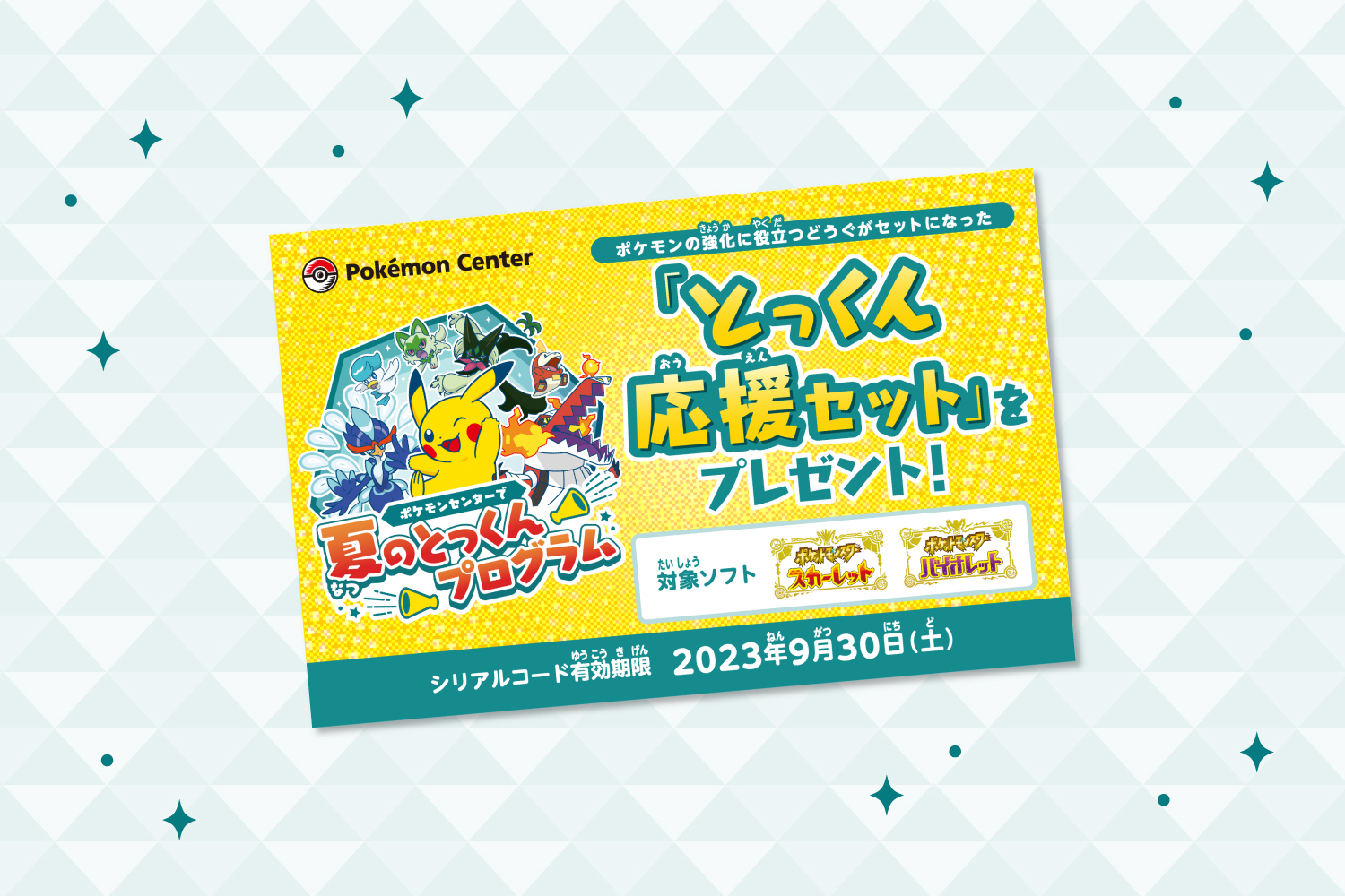 「ポケモンセンターで 夏のとっくんプログラム」7月22日から8月31日まで開催。「ゼロの秘宝」配信に先がけた初心者応援イベント