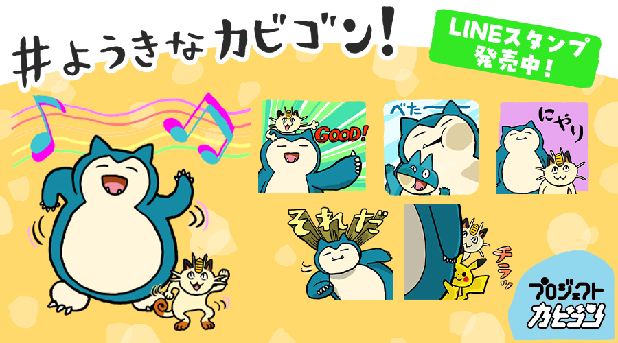 ポケモンのLINEスタンプ「ようきなカビゴン!スタンプ」,本日発売。「現場猫」くまみね氏の描き下ろし
