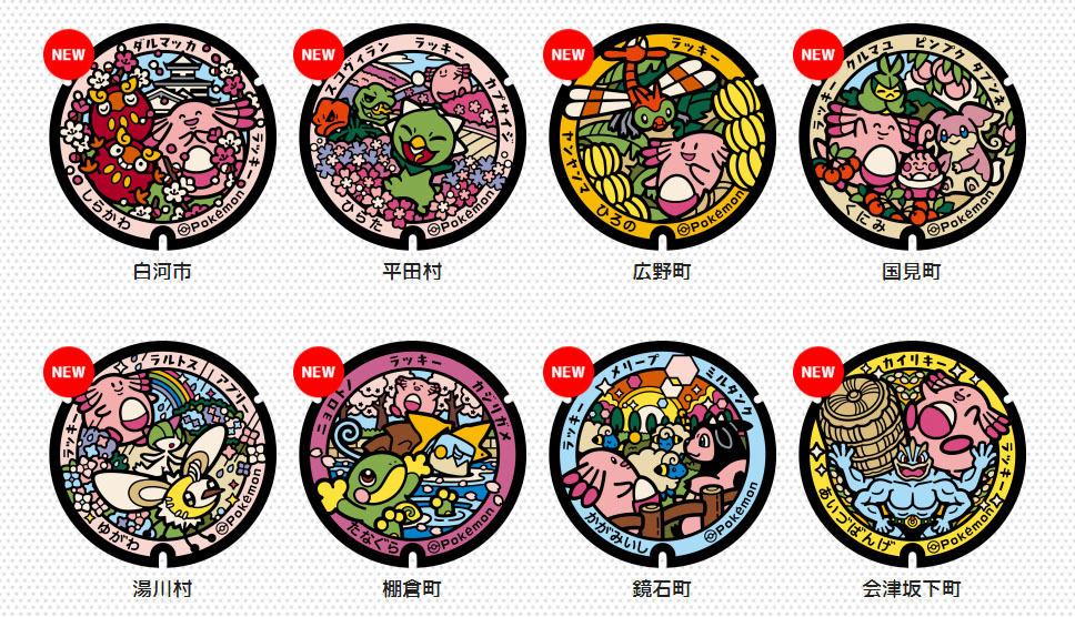 福島県に8種の「ポケふた(ポケモンマンホール)」が新たに登場。白河市など県内の8市町村で10月に設置予定