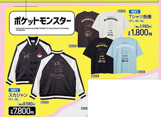 「ポケットモンスター」の新アパレルグッズ,アベイルで2月22日に発売。ミミッキュがデザインされたスカジャンやTシャツなどが登場