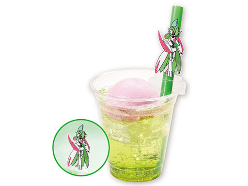 テツノブジンのカラーである緑とピンクをメロンソーダとピーチシャーベットで表現。かわいい色合いで、爽やかな風味が広がります。ストローに付属するストローチャームは、組み立てることでクリアスタンドとして楽しむこともできます。