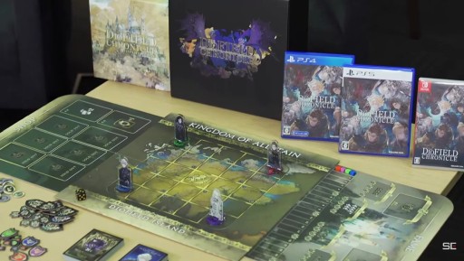 番組の終盤には,「コレクターズエディション」に付属する「The DioField Chronicle ボードゲーム」の実物の披露も行われた。ボードゲーム好きの開発陣が本編と並行して制作したものとのことで,非常に完成度が高いと熊谷氏。
