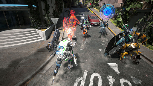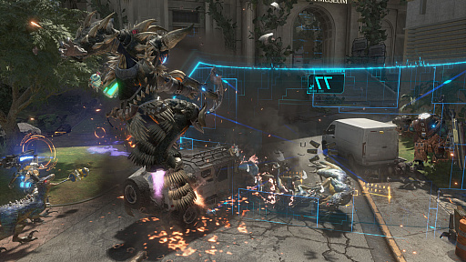 7月にリリースされた「エグゾプライマル」は,ハイテク強化外骨格「エグゾスーツ」を装備するエグゾファイターとなったプレイヤーが,突如出現して人々を攻撃し始めた恐竜たちに対抗するPvPvEアクションだ。アサルト,タンク,サポートというロール(役割)を担ったプレイヤーがチームを組み,恐竜と戦うだけでなく,エグゾスーツの品質を向上させるための実験体として,ほかのチームとも三つ巴の戦いを繰り広げることになる。