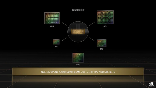 NVIDIA製プロセッサとの相互接続には,Armのオンチップインターコネクト技術「AMBA」や,オープン規格のダイ間インターコネクト技術「UCIe」(Universal Chiplet Interconnect Express)などを利用できるそうだ。
