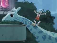 トレイラーでは,自然に浸食されている都市の様子や,ツタを利用してジャンプしたり,キリンの首を滑り降りたり,追っ手をかわしたりといったアクションが確認できる。前述のように本作は2Dアクションなのだが,画面手前にいる敵が発射する爆弾のようなものを避けていく,疑似3Dのシーンもあるようだ。