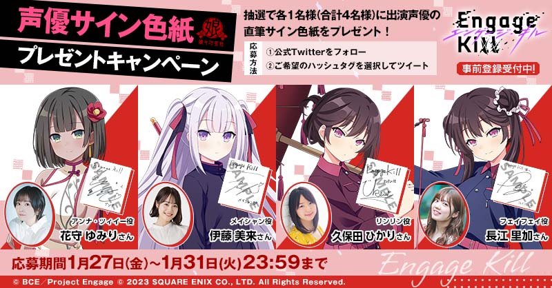 「Engage Kill」,事前登録者数30万人達成でスカウト10回分のゲーム内通貨を配布。システムページでは戦闘に関する内容が明らかに