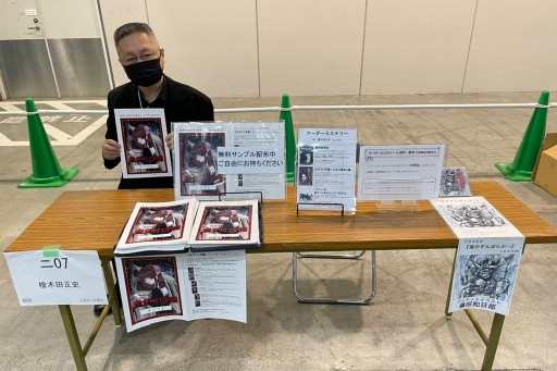 プロの作家としてゲームブック形式の長編小説「血ザクロ学園」シリーズなどを発表している檜木田正史氏は,個人ブースにてマーダーミステリーの「校正サービス」を発表していた。