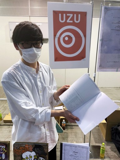 マーダーミステリーを手軽に楽しめるスマホアプリ「ウズ」(iOS / Android)のブースでは,マーダーミステリーに特化したメモ書き用のノート「マダミスノート」が頒布されていた。
