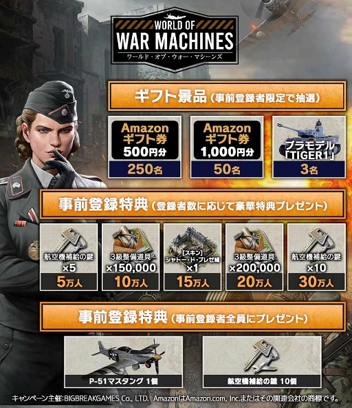 株式会社ビックブレイクゲームズ(代表:パク・スヨン)は2022年5月25日、新作スマートフォンゲーム『ワールド・オブ・ウォー・マシーンズ』の正式サービスを開始します。さらに、事前登録者数100万人達成とユーザー様のご声援にお応えし、事前登録をいただいた全てのユーザー様に対し、計30,000円相当の事前予約特典のプレゼントをいたします。