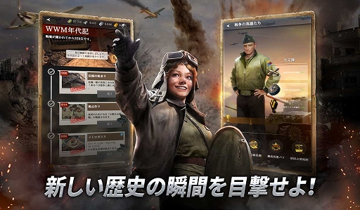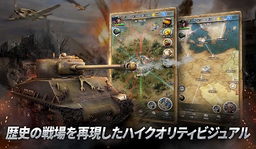 本作は実際の歴史を最大限リアルに再現したことが大きな特徴の、本格派リアルタイムモバイル歴史戦略シミュレーションゲームです。ユーザーは戦車、航空機、部隊長など多彩なユニットを駆使して戦略を練り、戦闘を有利に進めます。それ以外にも、他のユーザー達と連盟を結成し都市占領を目指すリアルタイム連盟間対戦や、世界中のユーザーと対戦ができるワールドアリーナ等々、歴史戦略シミュレーションゲームファンにお楽しみいただけるコンテンツが盛りだくさんです。
