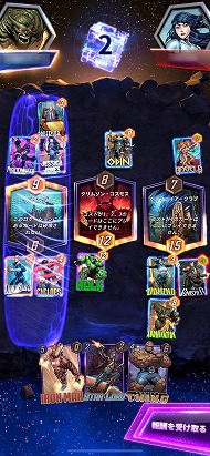 多くのカードゲームは,2人のプレイヤーが交互にターンを迎えますよね。しかしMARVEL SNAPでは,2人がカードを裏の状態で同時に出し,そのあと一斉ににオープンします。こういったゲーム展開なので,多くのカードゲームの経験者がイメージするはずの6ターンよりもプレイ時間は大幅に短くなる寸法です。