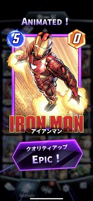 ちなみにカードを入手した直後は1枚絵なのですが,アップグレードすることで枠の色やキャラクター,背景,そしてロゴにエフェクトが掛かるようになります。これらを集めたカードの一覧画面は,まるでアメコミを飾った本棚のようで,とても見ごたえがありますよ。