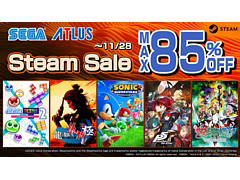 セガは本日,Steamで配信中の対象タイトルが最大85%オフになる「Steam SEGA Autumn Sale」を開始した。期間は2023年11月29日3:00まで。期間中は,「ソニックスーパースターズ」や「龍が如く 維新! 極」「ぷよぷよテトリス2」,アトラスの「ペルソナ5 ザ・ロイヤル」などが割引価格で販売される。