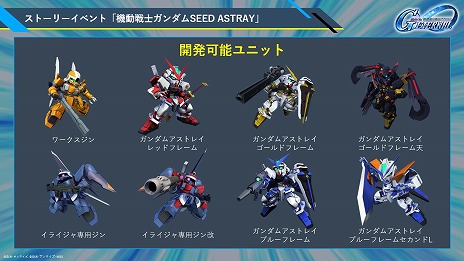 「ムラサメ 飛行能力試験型」などを確認可能だ。なお,新シナリオはメインステージの「機動戦士ガンダムSEED」をクリアすることでプレイ可能となる。