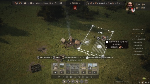 食糧や木材などの基礎資源の安定供給に目処がついたら,次は住民のための家を建てる番だ。「Manor Lords」の住居スペース(ゲーム内用語では「生活区画」)は,その広さをスナップツールによって自由に設定できるようになっている。