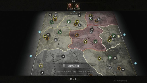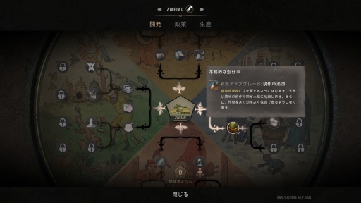 例えば,開発や政策の多くが現段階ではアクセスできないままであり,マップ外交易などの経済要素についても開発中であると表示されている。