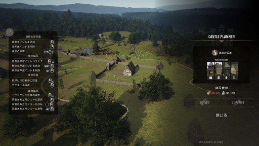 筆者もいろいろと試してみたが,邸宅を起点・終点にする形で集落を囲むように塔を複数配置し,建設可能な領域を拡大したうえで,そこに壁を追加すれば簡単な城塞都市がどうやら作れそうだ。