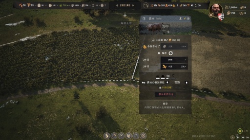 例えば,本作では住民財産と領主財産が区別されている。前者(ゲーム内用語では「地域の資産」)は,2レベル以上の生活区画の建設や物資の売却で増加し,その資金を利用して家畜を飼ったり,新たな交易ルートを開拓したりできる。