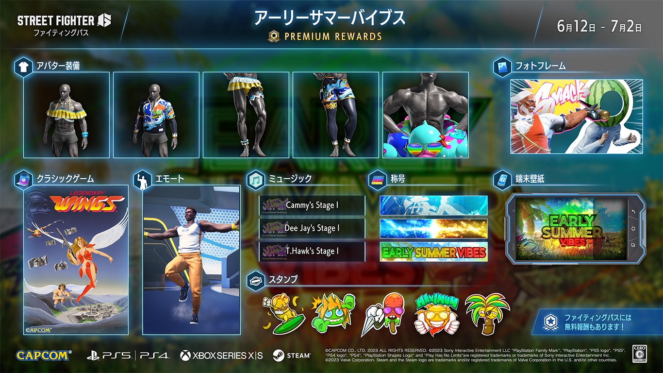 アバター装備やエモートなどを入手可能。「ストリートファイター6」,ファイティングパスの第1弾“アーリーサマーバイブス”配信開始