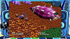 アーケードで話題を呼んだ、サミーの新感覚シューティングが、メガドライブで日本初登場。斜め視点の疑似3D空間を舞台に、溜め撃ちも可能なショットと、左右に装備するオプションユニット、3種類のボムを駆使してボスを目指します。