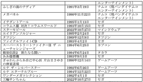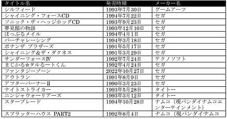 ※発表順。発売日、メーカー名はメガドライブ版発売時のものです。