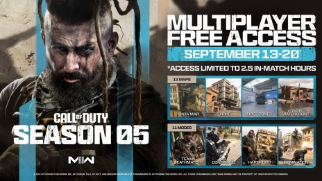 『Call of Duty: Modern Warfare II』のシーズン05 リローデッドの無料アクセスが、日本時間9月14日(木)午前2時から9月21日(木)午前2時までの期間で開催されます。期間中には、「シップメント 24/7」のような定番プレイリストから、「DRC:ゾーン 1」や「ハボック」など、新しいマップやモードをはじめとする様々なマルチプレイヤーコンテンツを体験できます。