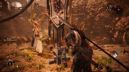 また,本作には「士気ランク」と呼ばれる要素があり,軍旗はこれにも大きく関わる。士気ランクは敵を倒すと上がっていき,これが高いほど自身の戦闘力が向上する。ただし,敵に倒されるとせっかく上げた士気ランクを失い,また溜め直すことになる。死にゲーである以上,自分が倒された相手というのは強敵であり,こちらの戦闘力が下がった状態で再戦に臨むのは,いくらなんでも自殺行為というものだろう。